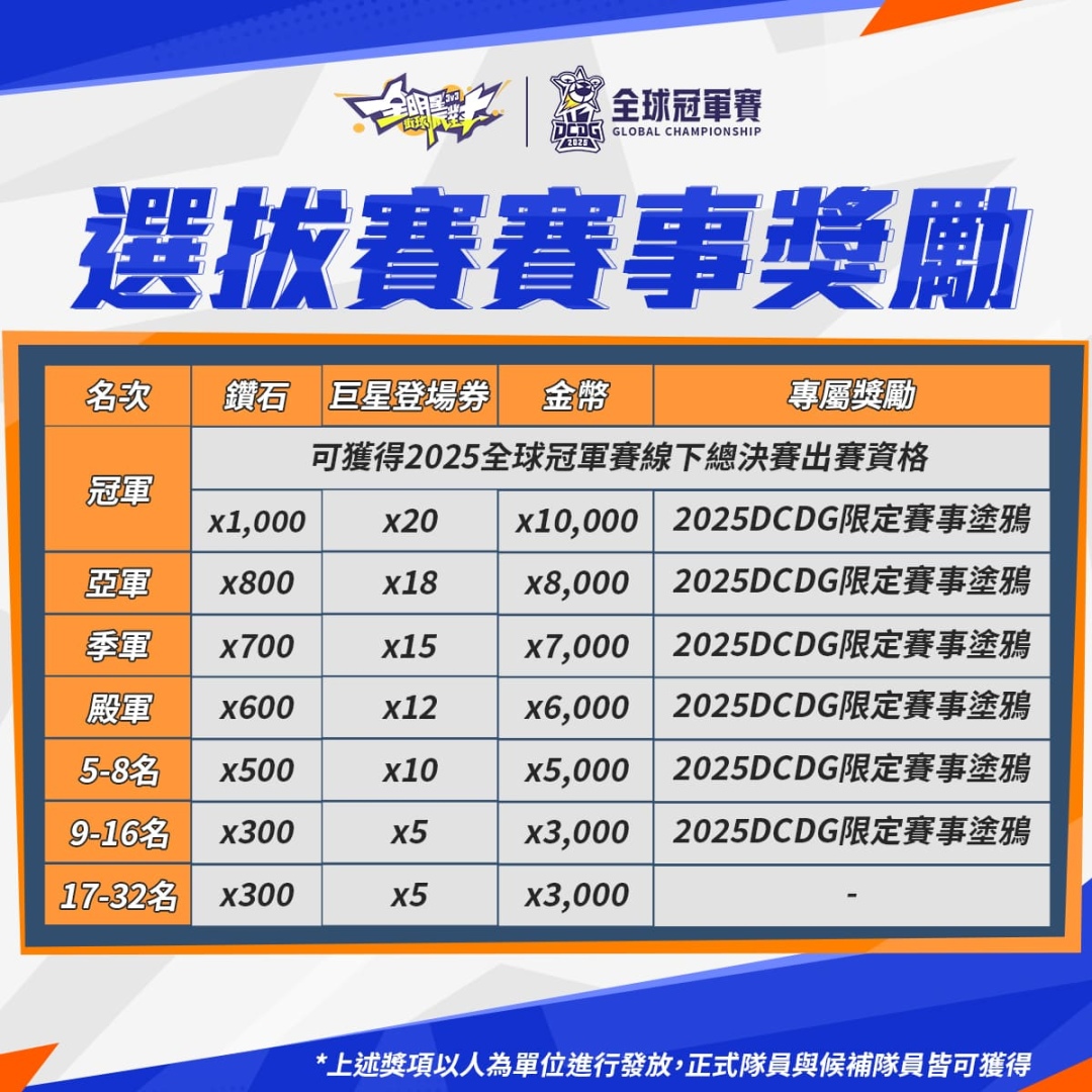 .隊伍名額:上限 32 隊,若報名超額將以「隊伍首發隊員三人之星數總合」由高至低排序錄取。