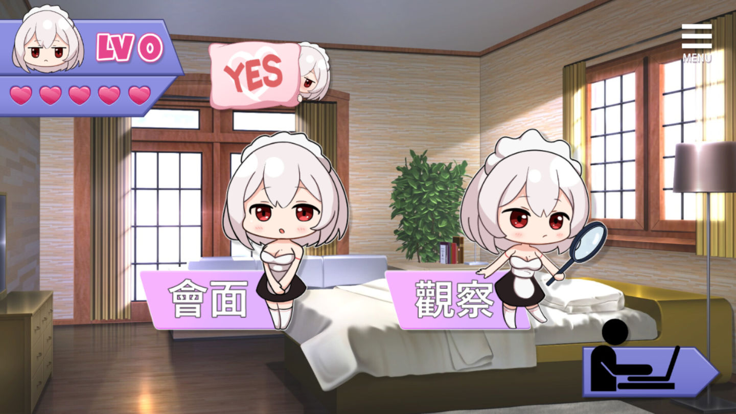 以培養與女僕好感度來推進遊戲,隨著好感度的 Lv 上升,會解鎖更多的場景、對話及功能。觀察能夠看看女僕正在做甚麼,有時候也能得到有幫助的訊息。好感度不會有任何下降懲罰,只有增加多寡,不用擔心任何壞事發生!