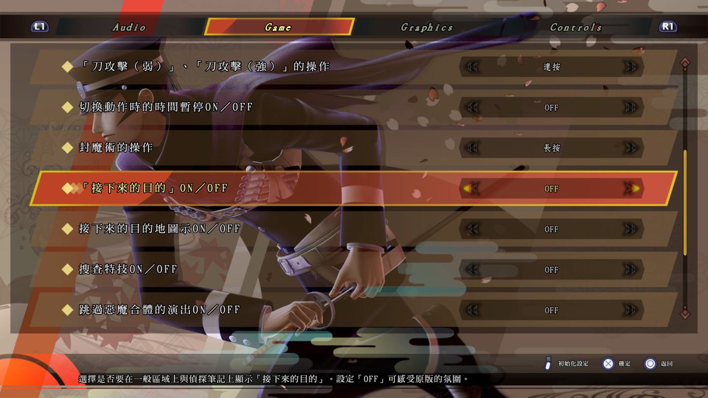 ・為了能讓玩家體驗原版的遊玩氛圍,新增能夠分別切換開關「接下來的目的」、「目的地圖示」、「有效的搜查特技」的設定。
