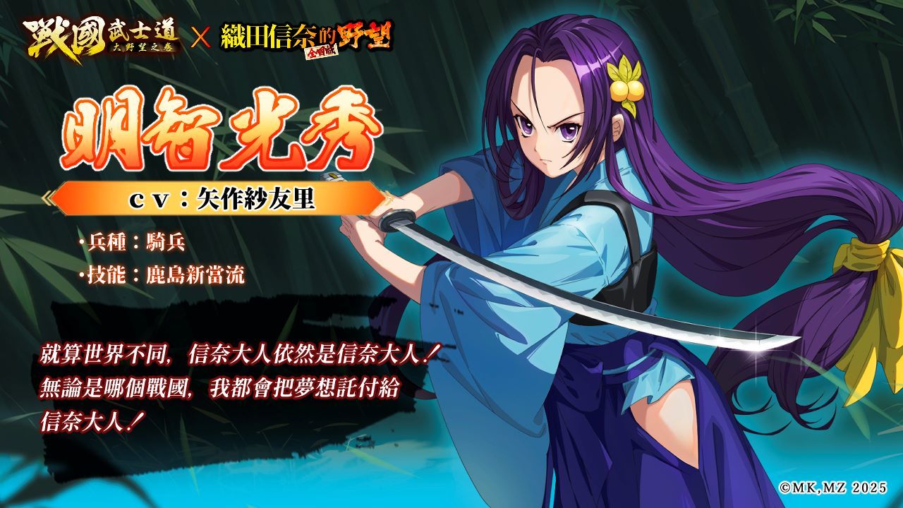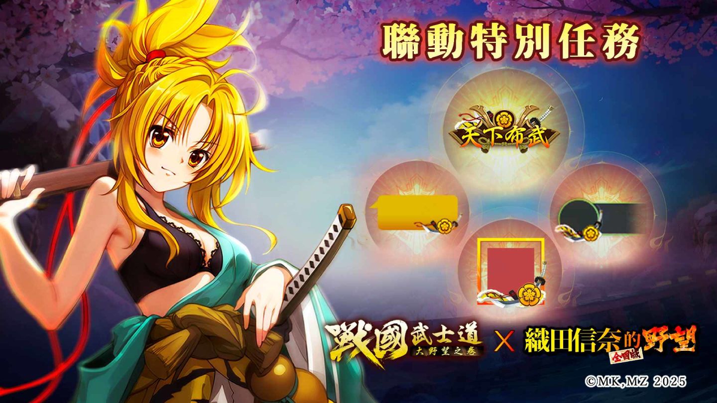 Daimaou 代理發行的日本戰國賽季制 SLG《戰國武士道〜大野望之卷〜》,即日起正式開啟與《織田信奈の野望 全國版》的聯動活動。人氣角色織田信奈、柴田勝家、丹羽長秀、明智光秀將在戰國武士道的世界裡依次登場。