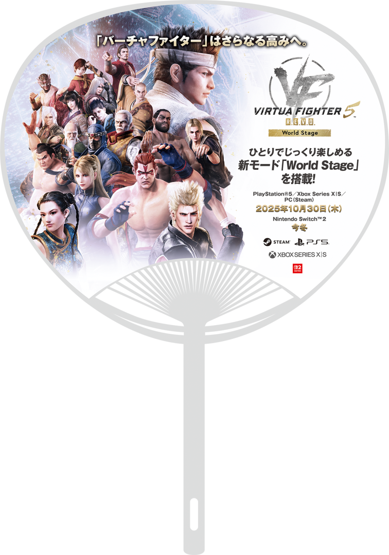 完成體驗的玩家將可獲得紀念品「《Virtua Fighter》系列 Logo 貼紙(黑、白)」。此外,展區周邊也將發送「Virtua Fighter 5 R.E.V.O. World Stage 團扇」。歡迎前來領取!