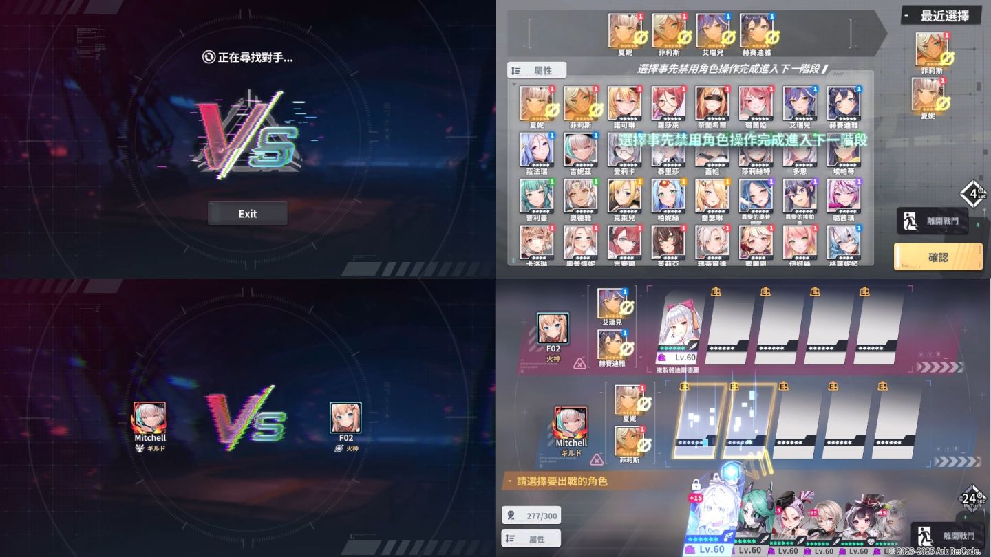 在本次排名戰中,雙方會先選用本場對戰中禁止使用的團員,之後開始輪流選擇不重複的出戰團員,在各自選完 5 名團員後,選擇此次禁賽團員後開始進行 4vs4 的實時對戰,並展開一場策略與即時操作並重的對決!