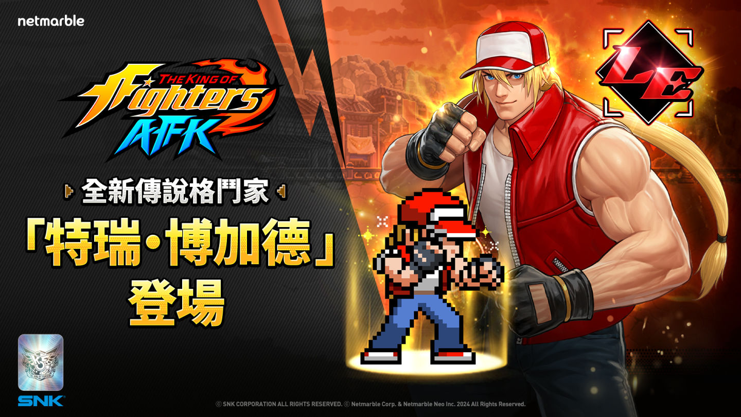 作為本次更新的一部分,特瑞・博加德已現身《THE KING OF FIGHTERS AFK》世界。為慶祝他的登場,特瑞・博加德精選活動已開放並持續至 10 月 1 日止,為玩家提供更多獲得特瑞.博加德,將其加入格鬥家陣營中的機會。
