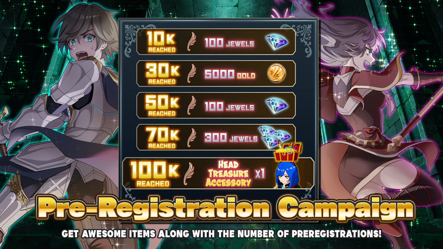 .獎勵內容:根據總登錄人數發放遊戲內獎勵,目前已突破 70,000 人!「寶石」可用於購買特別道具的遊戲內虛擬貨幣,而「金幣」是可用於裝備強化及購買道具。