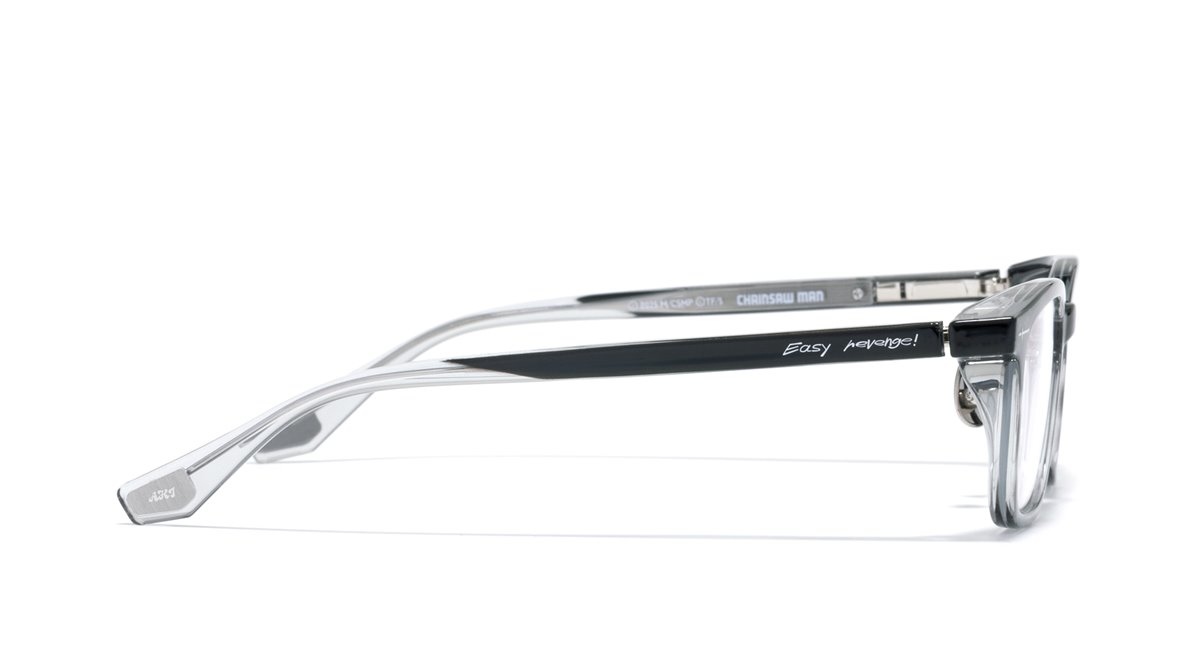 例如,鏈鋸人專屬款有著銳利鋸齒與「變身啟動拉環」、早川秋專屬款有著「武士刀」與「未來惡魔」的元素、蕾潔專屬款則有頸部的「拉環」等,在各個細節都點綴了讓粉絲們為之讚嘆的巧思。這款結合了最新眼鏡時尚潮流與角色特徵的聯名眼鏡,不僅百搭實用,每次戴上都令人雀躍。