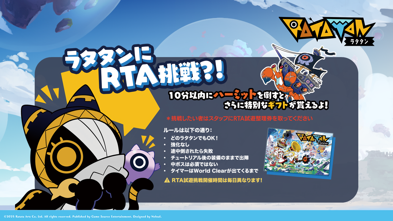 在「東京電玩展 2025」上,官方將舉辦特別的 RTA 挑戰企劃。在沒有任何強化的情況下擊敗「寄居號」,並在指定時間內通過第一個關卡「帕樂比海盜」即可成功!成功者將獲得額外的禮物。官方期待挑戰者的參與,請確認規則後報名參加!