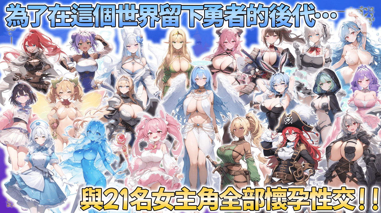 角色設計同樣百花齊放,從自由奔放的女神大人、前作曾出現過的妖精村新任村長「納迪爾」、癡女夢魔、腹黑偶像、甚至是報恩的藍色史萊姆美少女……多樣化的人設,再加上豐富的體位與各式各樣的 PLAY,讓各為勇者大人體驗最極致的異世界後宮冒險。