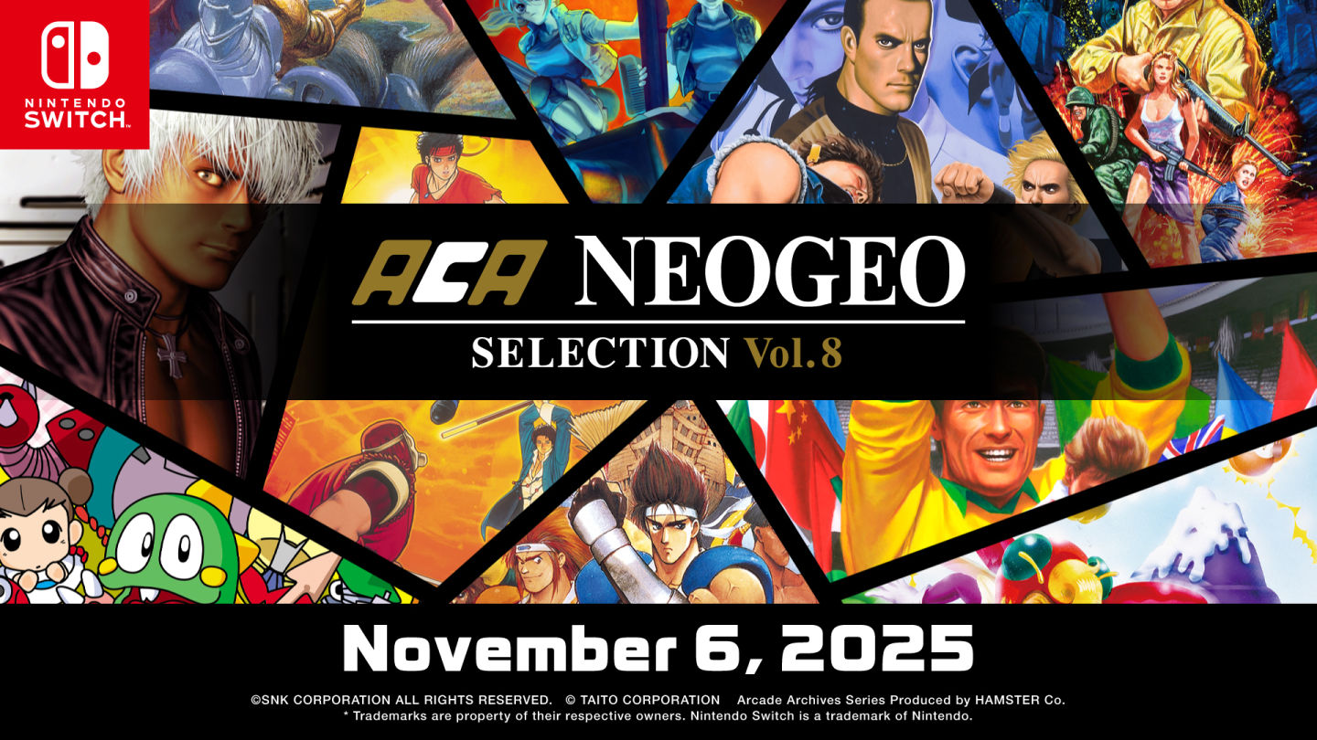 株式會社 SNK 宣布,收錄了從「NEOGEO」名作.傑作之中精選的 10 款作品合集《ACA NEOGEO SELECTION Vol.7》、《ACA NEOGEO SELECTION Vol.8》,兩款遊戲的 Nintendo Switch 實體版將於 2025 年 11 月 6 日(週四)同時發售。