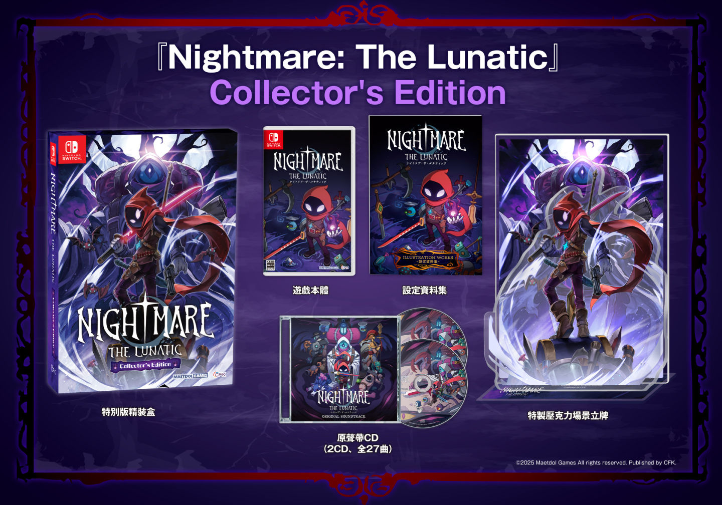 初次限定版套裝名為《Nightmare:The Lunatic 惡夢狂人》。作為首次特惠,購買標準版和初次限定版的所有玩家都將獲得一個印有主角圖案的壓克力鑰匙圈。