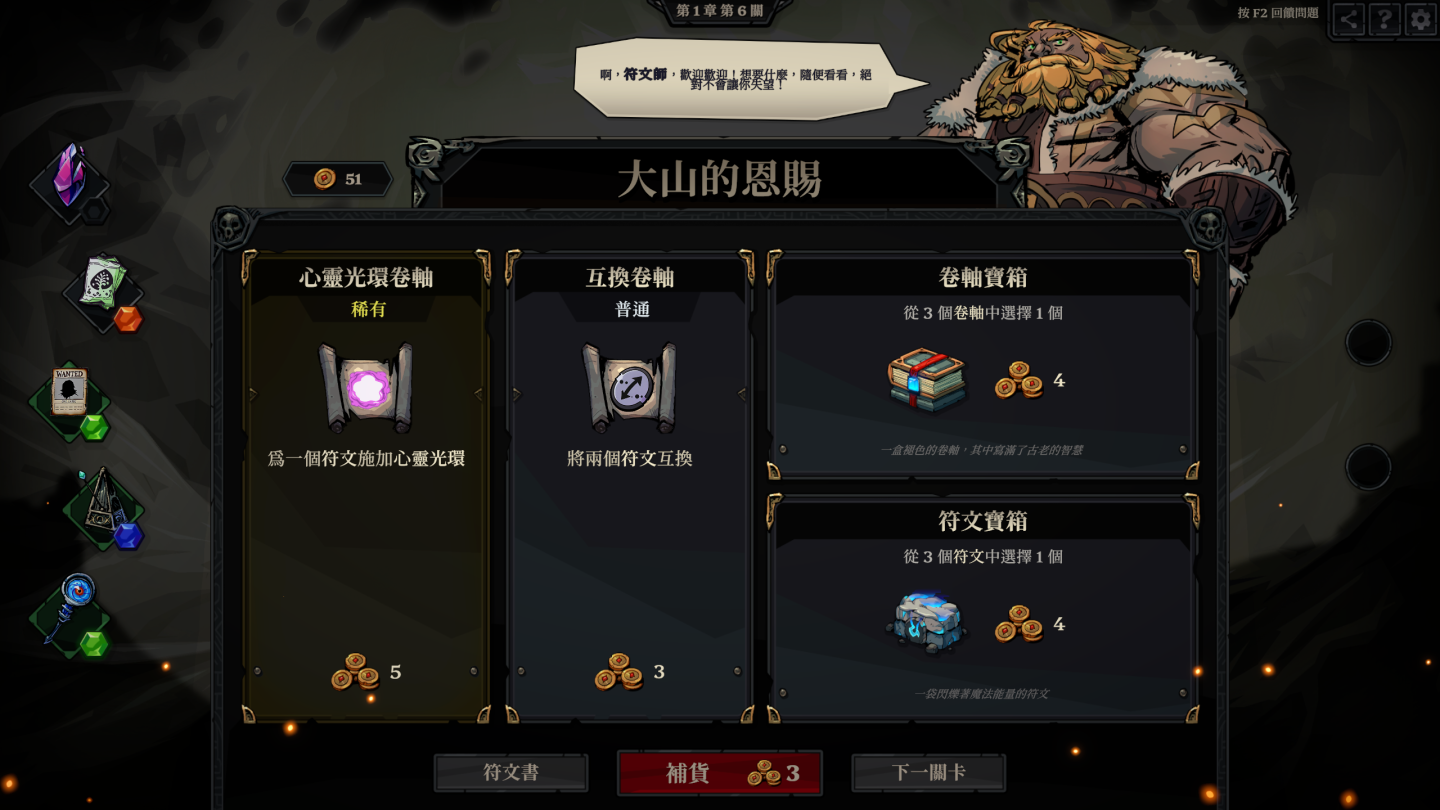每本符文書都包含五個符文列,每一列相當於單獨的牌庫。在商人伙伴的助力下,添加、移除或修改不同符文列,讓每次重隨更貼近你的目標。