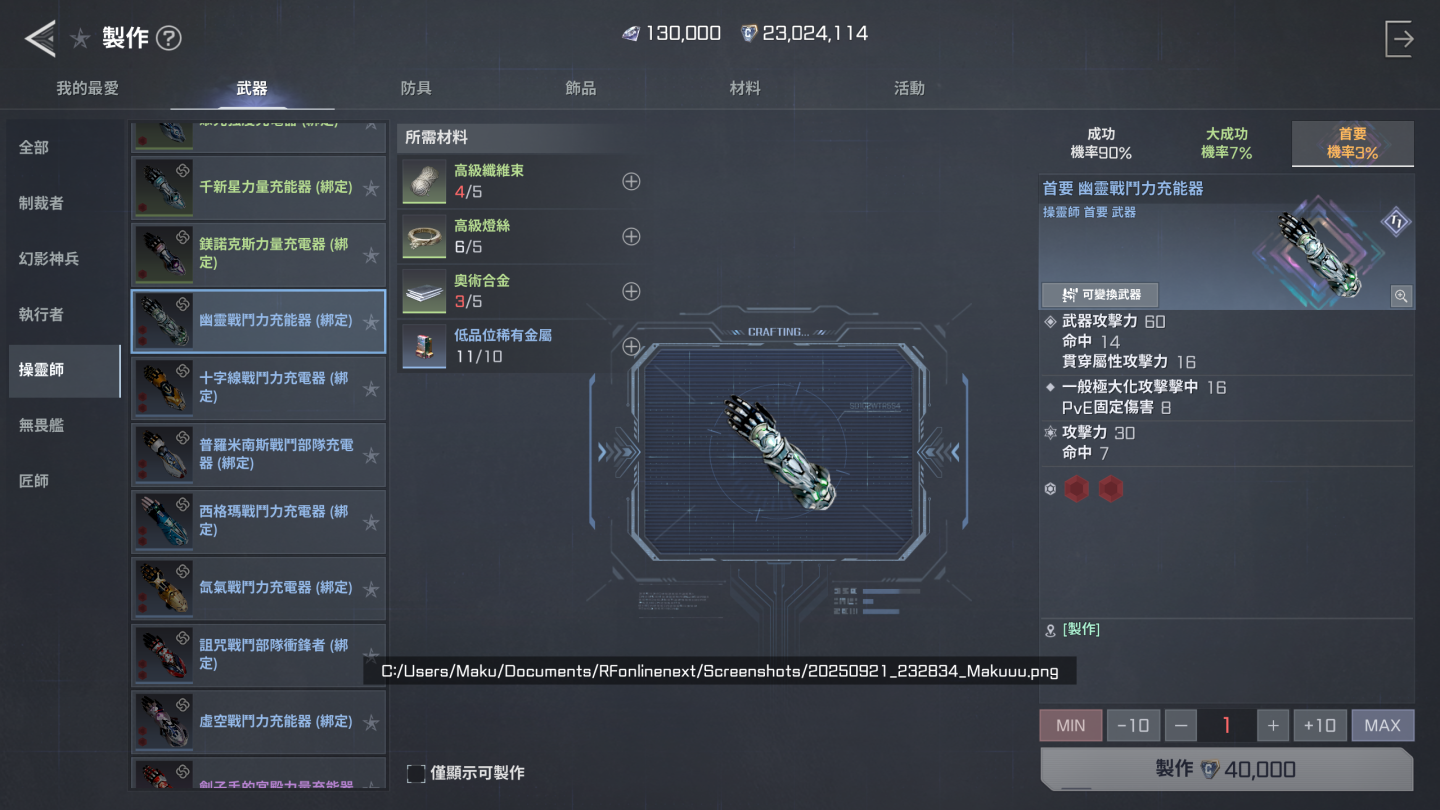 接著就是《RF ONLINE NEXT》中最重要,應該也是玩家們非常期待的「神器」製作環節,神器製作分為MAU和發射器兩種,其中發射器需要到解完主線第四章4-26的「發射器啟用」才能夠獲得第一台設計圖。