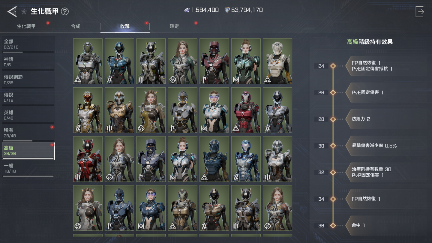 《RF ONLINE NEXT》中的低階生化戰甲也非常重要,除了當作合成基礎材料,慢慢合成到英雄甚至傳說階級生化戰甲之外,玩家也需要盡可能將低階戰甲補滿,解鎖生化戰甲收藏中的圖鑑屬性,這也是角色養成中非常重要的一個環節。