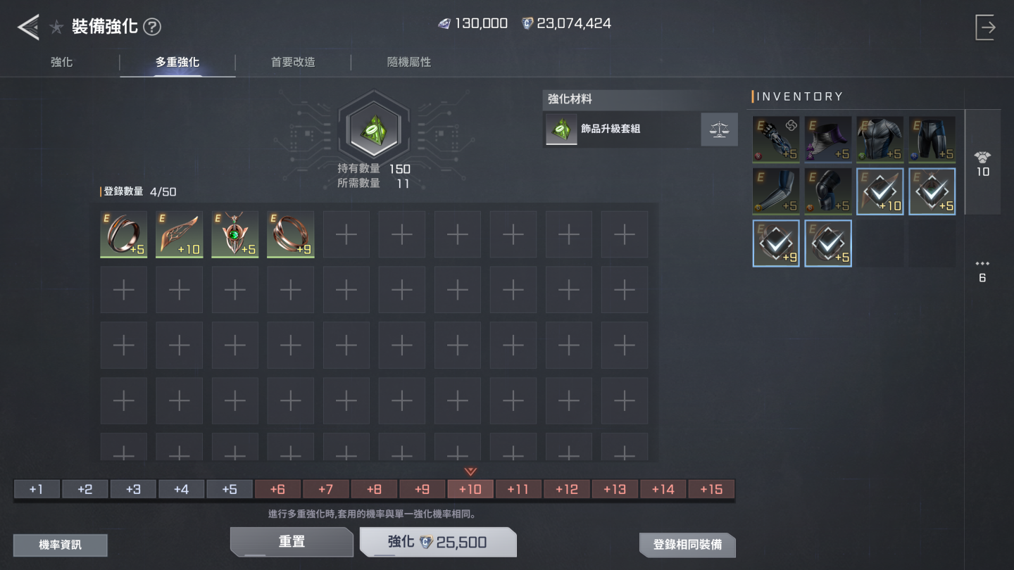 在打造或是透過任務獲得一批新裝備後,也可以透過「多重強化」功能,一次將所有裝備強化到圖鑑需要的相對應等級,不需要每一件裝備都分開強化,在前期裝備不多的狀況下體感不會相差太多,但如果是中後期資源量足夠,圖鑑收藏也達成一定%數後,一次準備數十件裝備挑戰+9或+12裝備收藏時,相信會是非常有用的功能。