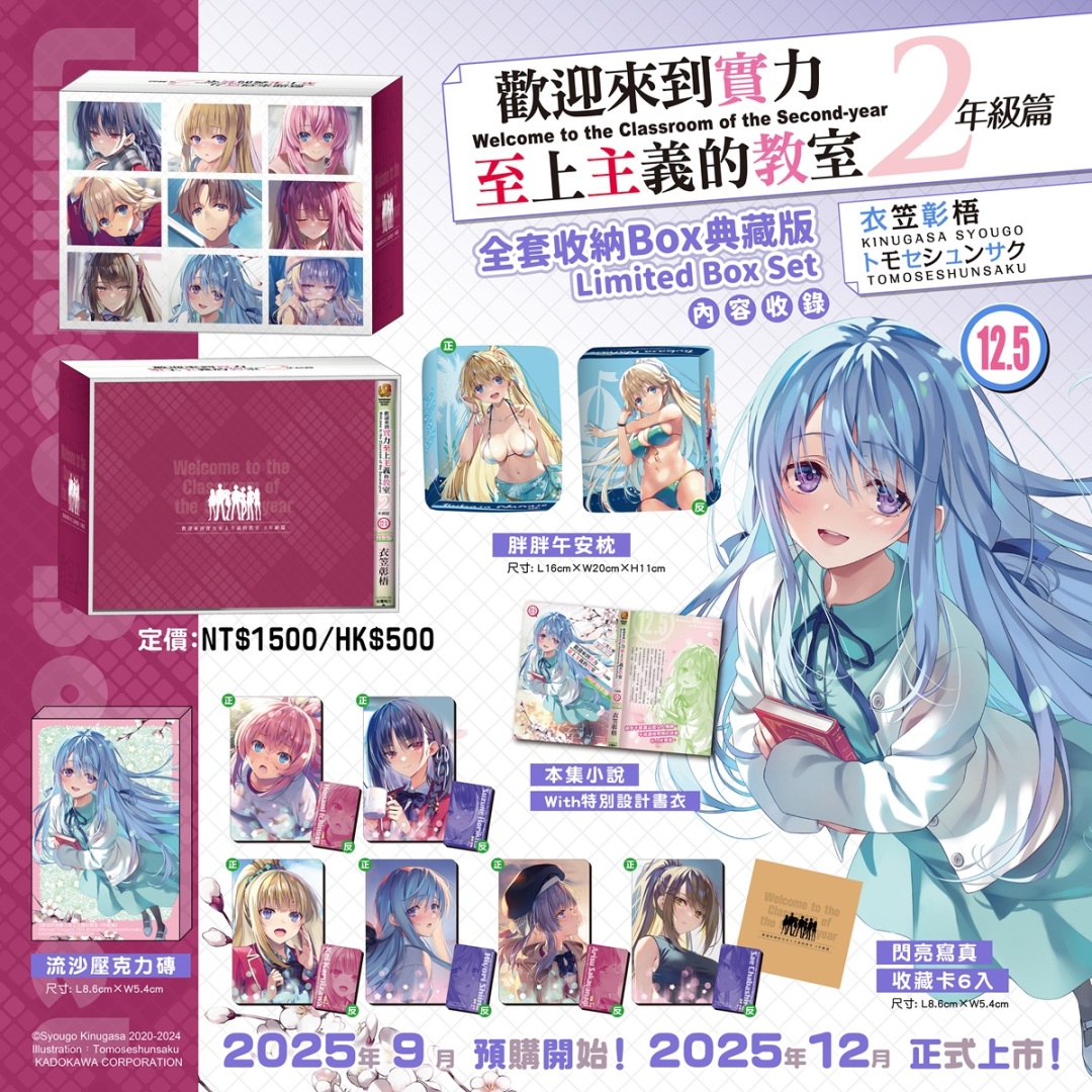 由衣笠彰梧執筆、トモセシュンサク擔綱插畫,累積銷量突破 840 萬冊的超人氣校園鬥智輕小說《歡迎來到實力至上主義的教室》,系列即將於今年 12 月隆重推出二年級篇的最終章第 12.5 集!