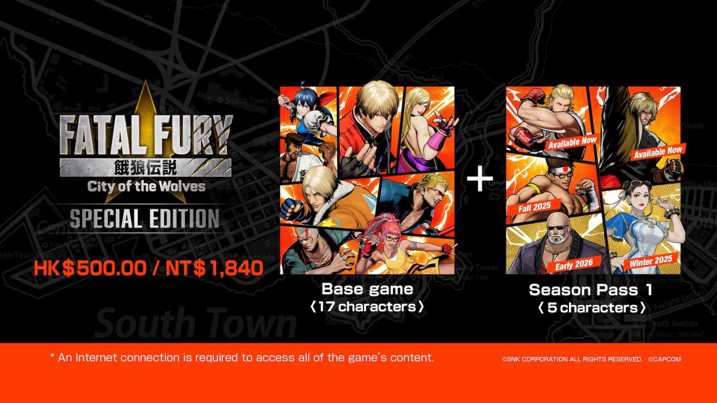 以 DLC 角色「東丈」為首,包含《Street Fighter》系列的「肯」「春麗」等角色的「季票1」於一體的遊戲套裝「餓狼傳說 City of the Wolves Special Edition」,正在好評發售中!