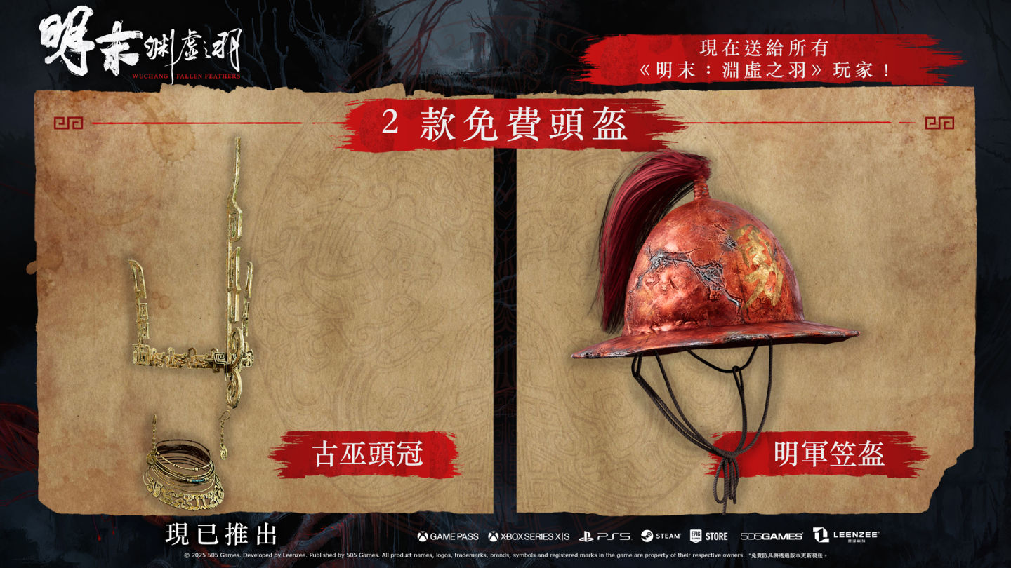 此外,所有《明末:淵虛之羽》玩家將免費獲得兩款頭飾道具: