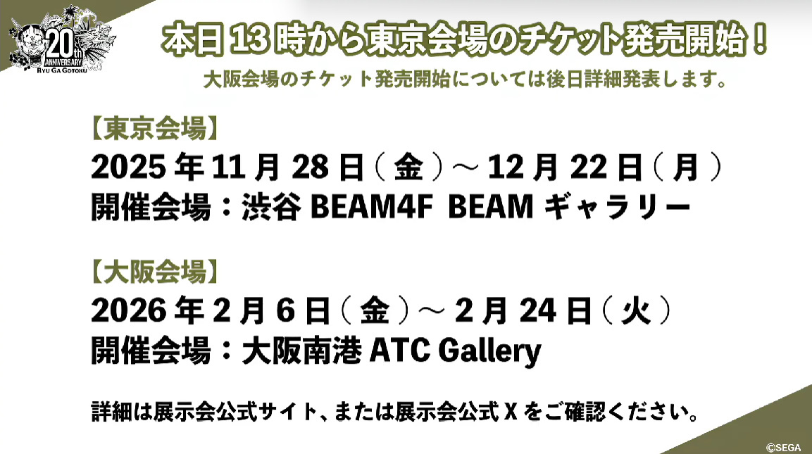 官方也預告,為了慶祝系列 20 週年紀念,將會推出「《人中之龍》冠婚葬祭展」,屆時將會展出眾多開發資料等內容讓玩家確認,喜歡系列作的粉絲們屆時可別錯過。