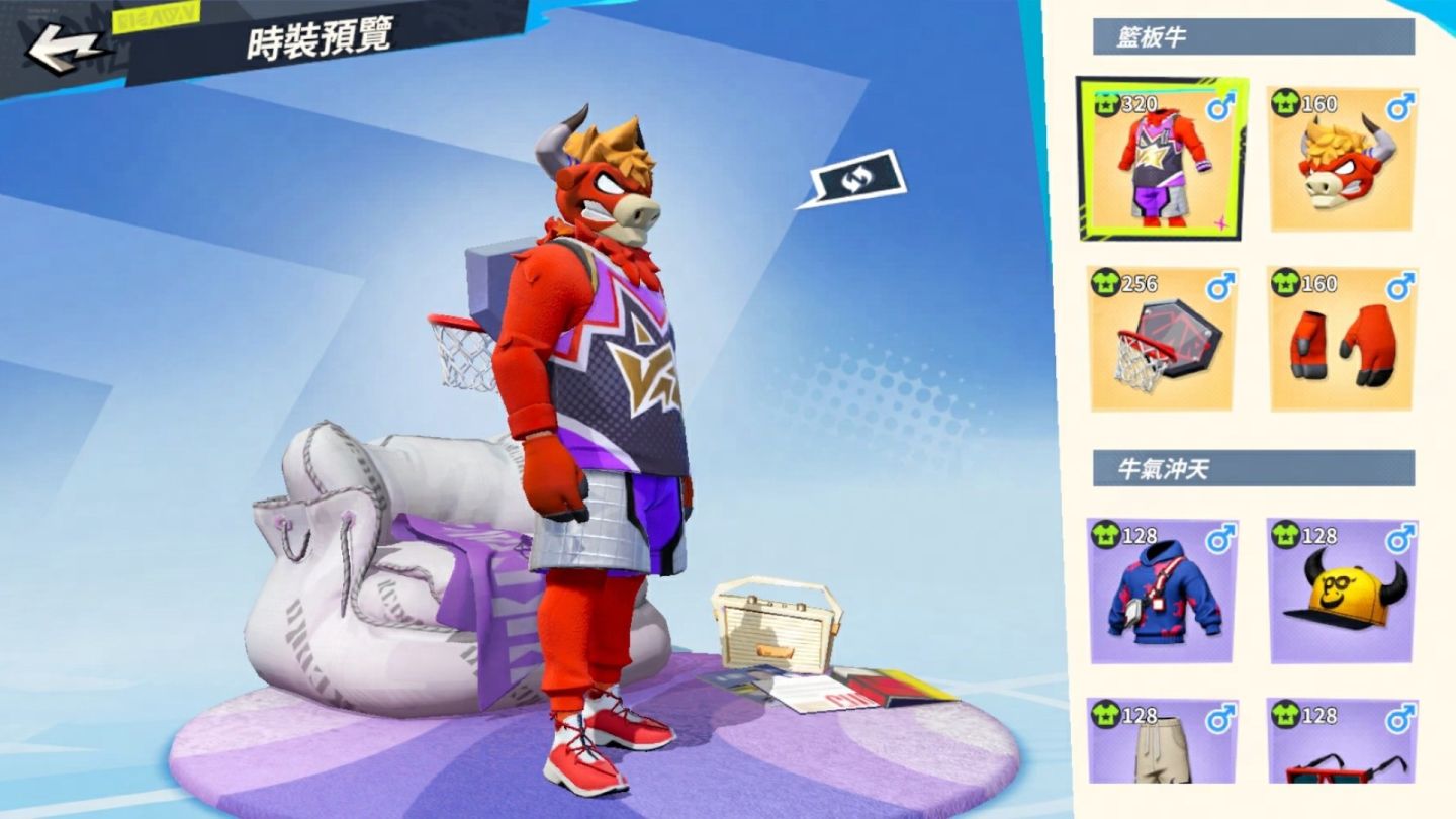 而街球場上,潮流也絕不缺席!時裝補給箱「全場最牛」霸氣來襲:高級時裝「籃板牛」以潮流俏皮的牛頭造型搭配誇張配色,將趣味性與個性化完美融合;中級時裝「牛氣沖天」以牛角鴨舌帽為穿搭重心,延伸出整身的時尚潮流,穿上它,無論是街頭對戰還是上廣場逛街,都能立刻成為全場焦點。從霸氣凌厲的牛角裝飾,到潮流俏皮的牛頭造型,無論你想要鎮壓禁區還是耍帥搞怪,都能牛翻全場。