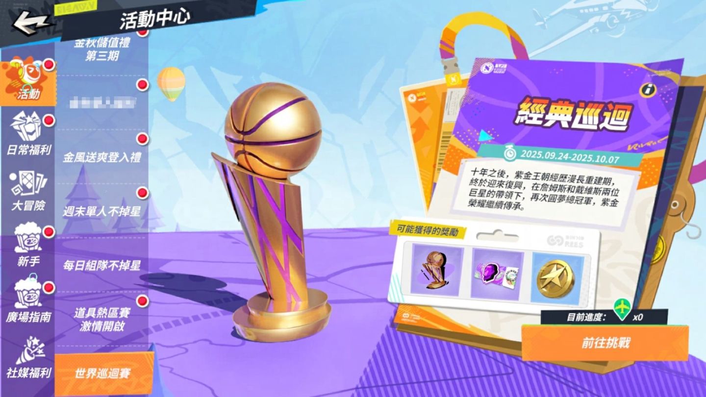 經典「世界巡迴賽」也再度回歸,本次舞台來到洛杉磯,帶街球手重溫紫金王朝的傳奇歲月。透過層層挑戰關卡,街球手將親歷冠軍榮耀的每一步,重現當年熱血場景。完成挑戰除了能獲得關卡獎勵,更能體驗一段對經典籃球歷史的致敬旅程。