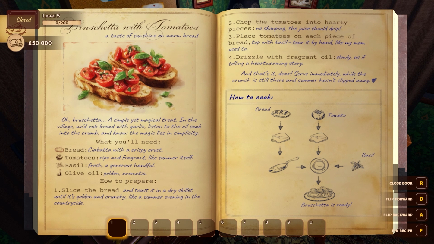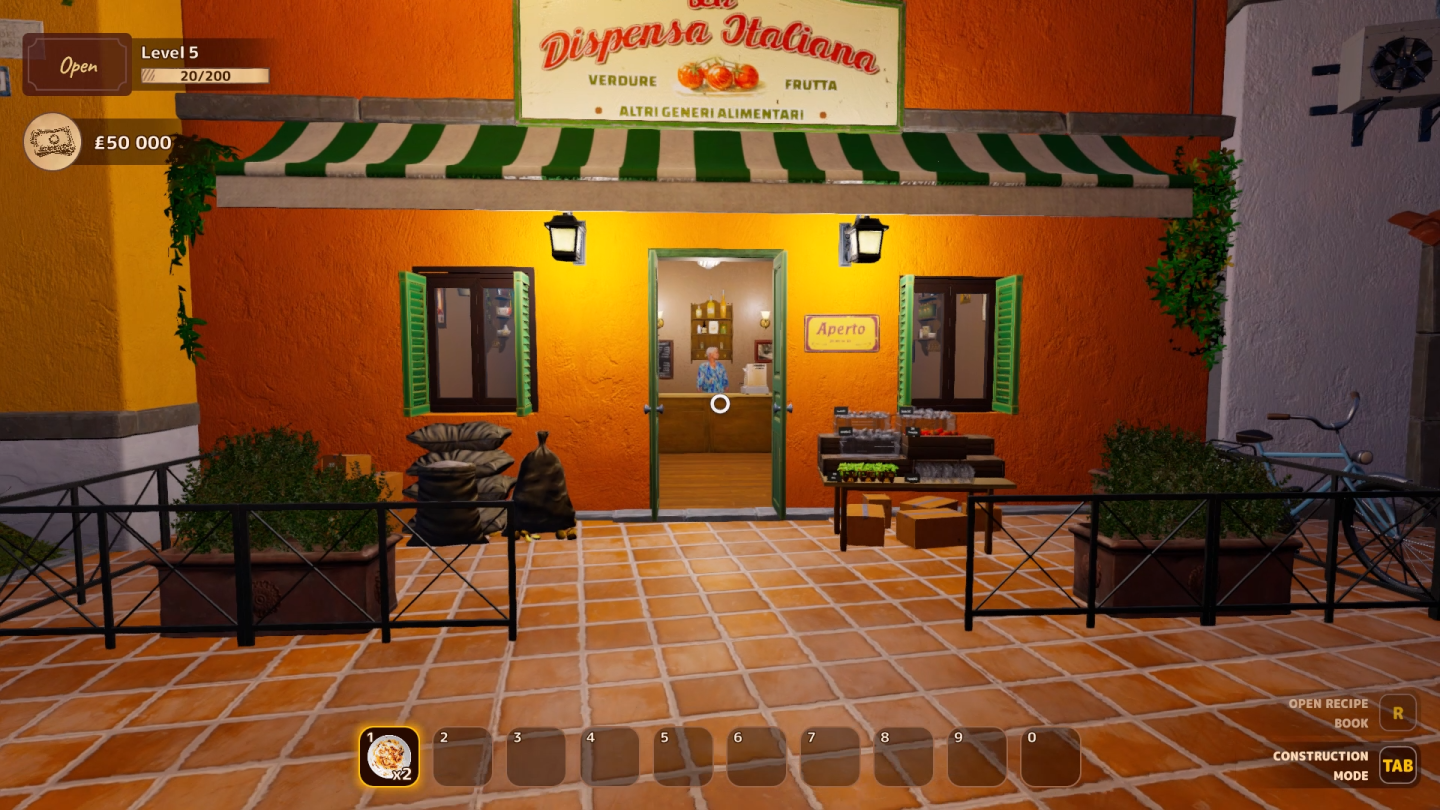 遊戲的核心玩法是一場對義大利美食文化的真摯致敬。玩家可透過直觀有趣的迷你遊戲製作披薩、義大利麵與意式烤麵包片,重現烹飪的滿足感。除此之外,遊戲還原了咖啡館的完整日常:採購食材、烹製料理、接待顧客、清理桌面、收款結帳,甚至包括洗碗。