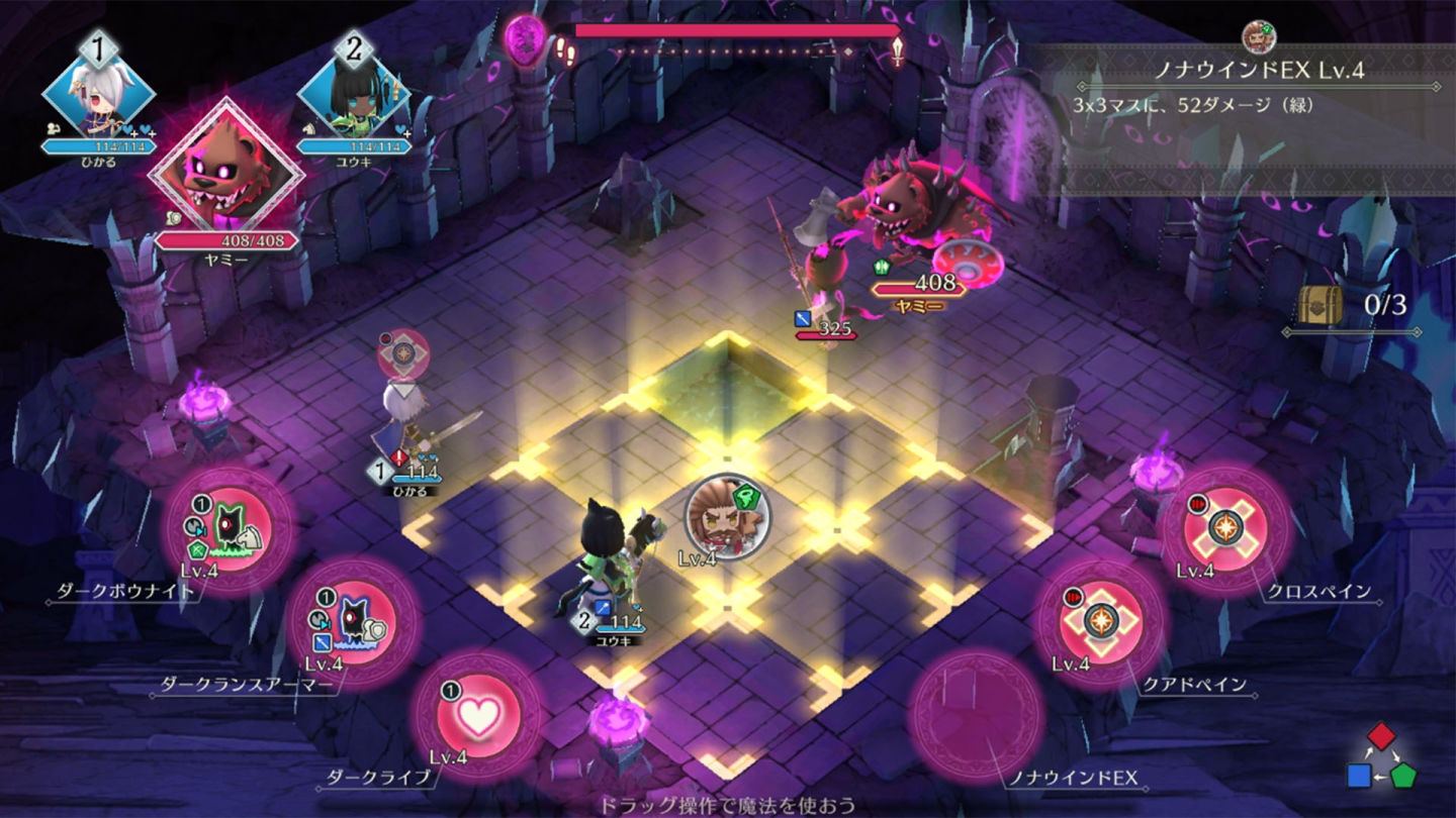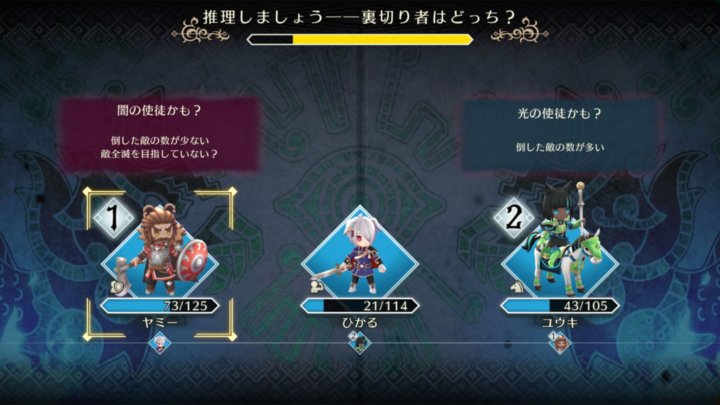 至於在本作戰鬥方面,會從參與戰鬥的三人中挑選出一人作為背叛者「闇之使徒」。而玩家則是可以選擇是要以迷宮攻略為目標的光之使徒,或是做為背叛者的闇之使徒兩種不同立場來進行遊戲體驗。至於在戰鬥方面,央會採用玩家只要拖放魔法圖標,角色就會向敵人自動移動的自動戰鬥方式。一旦敵方或我方全滅,就會針對誰是三人中背叛者的闇之使徒進行投票,而投票結果將會對後續的戰鬥產生有利或不利的影響。究竟是要以光之使徒身分正確找出背叛者?還是要以闇之使徒身分欺騙對手?都將會對戰鬥造成決定性影響。