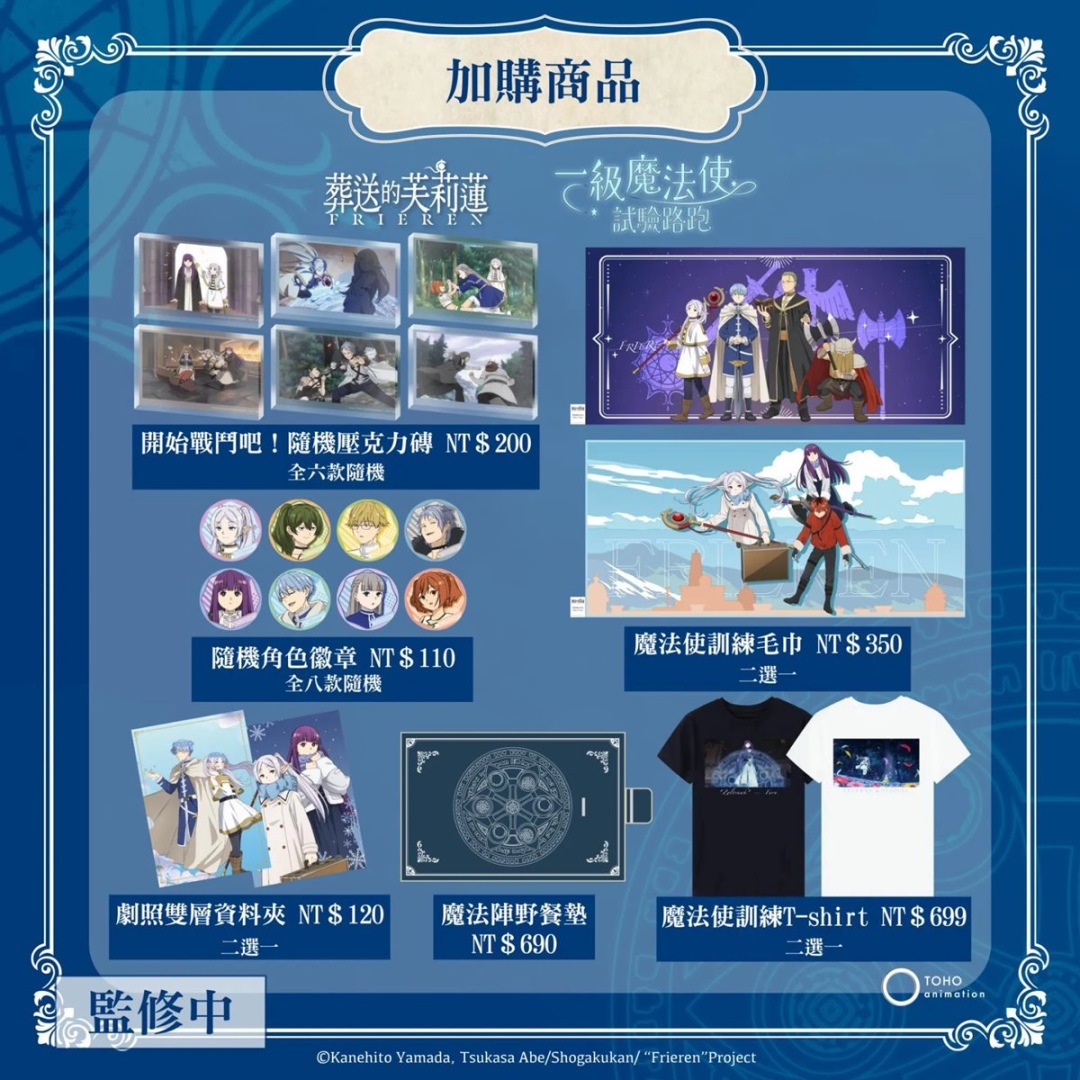 除兩大套組外,本次活動亦同步推出多款限定周邊,包含魔法使訓練 T-shirt、毛巾、魔法陣野餐墊、劇照雙層資料夾,以及隨機款的 壓克力磚(全六款)與角色徽章(全八款) 等。粉絲可於報名系統線上加購,現場亦將販售,數量有限,售完為止!