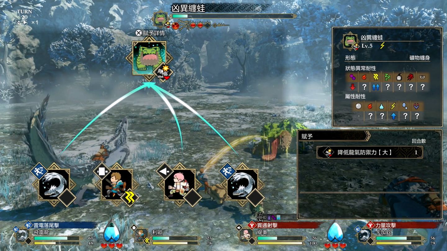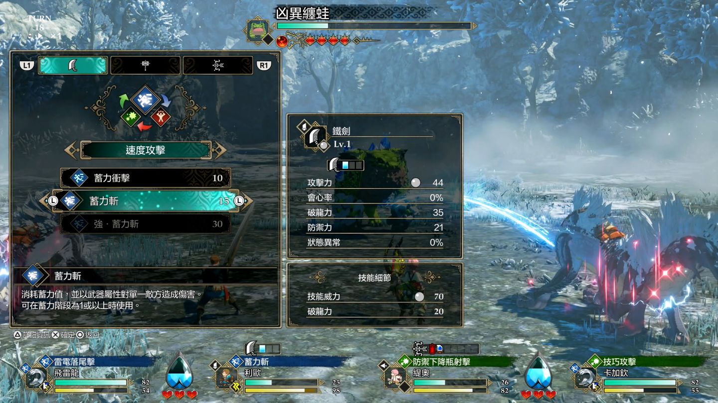 在厄石森林內部,則是出現了具有石頭纏身的纏蛙,結晶的屬性讓纏蛙不用進入憤怒狀態也會出現型態變化,更有自動反擊的麻痺石頭攻擊,要怎麼選擇攻略的模式也是這類 RPG 作品的魅力之一。