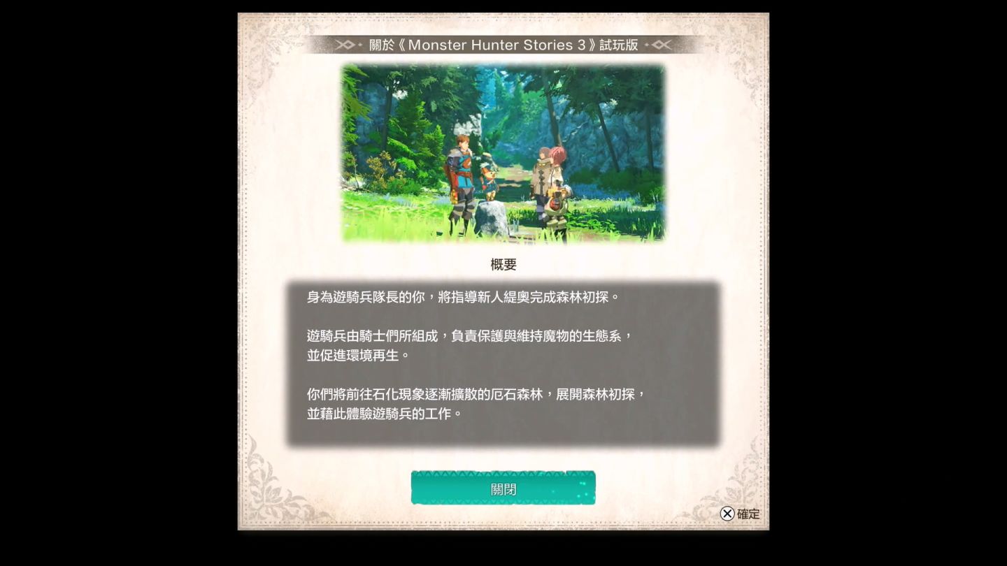 在本作中玩家可以選擇成為王子或者公主擔任騎士隊長,試玩版本則是以王子主角帶領新人遊騎兵緹歐前往「厄石森林」執行探索魔物蛋的任務。