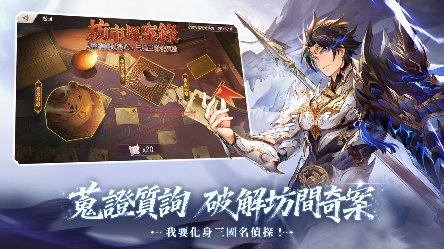 完成每一階段探案任務都會獲得掉落道具「真相碎片」,累計獲得「真相碎片」數量,即可獲得對應獎勵,獎勵包含「SP 招募券、金餅、金點」等,偵破案件即可獲得「武將-昭珩陸遜」。
