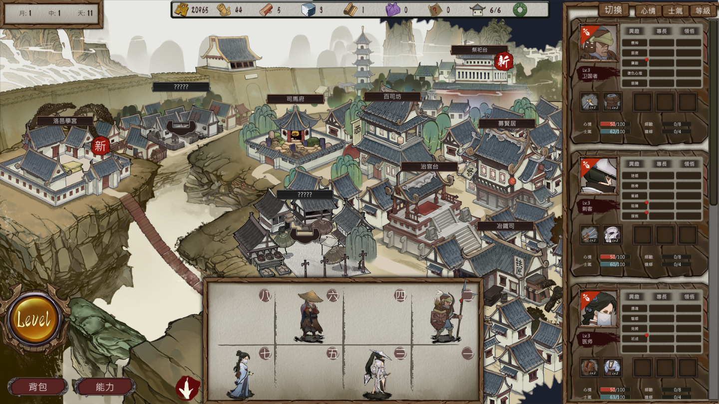 每當探險結束返回城鎮,短暫的休憩成為俠客們難得的放鬆時刻。在這裡,你可以興建各類功能建築,招引春秋時代的傳奇名士前來相投——信陵君魏無忌助你廣納豪傑,神匠干將為你錘鍊兵器,謀聖鬼谷子則能提振全隊士氣。