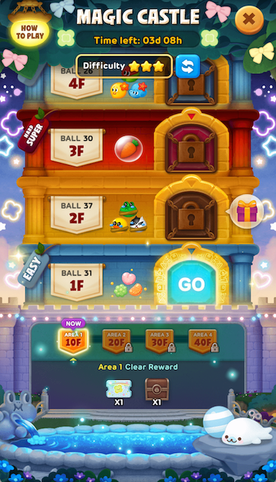 魔法城堡共有 3 個區域,每個區域有 10 個樓層。玩家需要從 1 樓開始按順序挑戰活動關卡,每通過 1 個區域就可以獲得特別的獎勵道具!