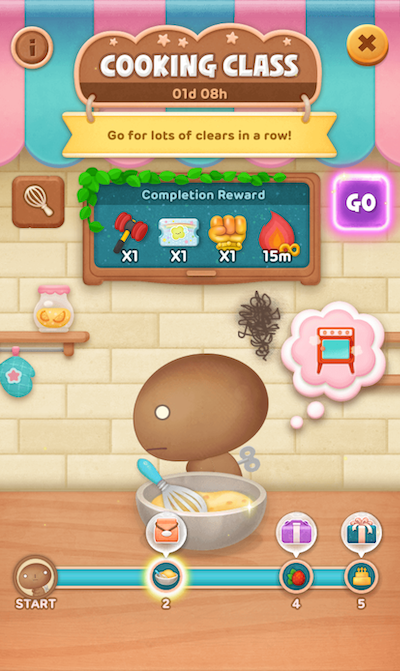 在活動期間內,連續通過指定數量的新關卡(一般關卡),就能製作蛋糕。完成蛋糕後,就可以獲得活動獎勵!