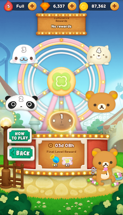 在開心遊樂園中,玩家需使用 1 個火焰來連續通過活動關卡即可獲得獎勵。在通過各階段的最後 1 個關卡時,能同時獲得累積獎勵和最終獎勵,若還有下個階段則可繼續進行挑戰。