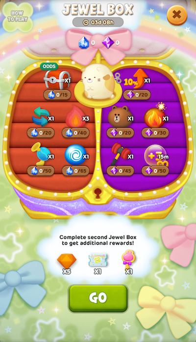 在活動期間內,只要通過一般關卡並蒐集到指定的寶石數量,就可以在寶石箱內獲得相對應的遊戲道具,蒐集滿寶石箱內的所有道具,即可獲得最終加碼獎勵!