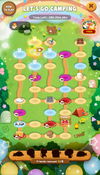 在活動中可以自己決定路徑,努力通過關卡幫助迷路的朋友,一起邁向終點的露營場吧!救出的朋友越多,可獲得的獎勵就越豪華。
