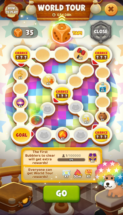 在活動期間內,只要通過一般新關卡,即可獲得擲骰子的機會。在世界之旅活動頁面中擲骰子前進並完成環遊世界一周,即可獲得活動獎勵,如果搶先完成還能獲得搶先過關獎勵喔。