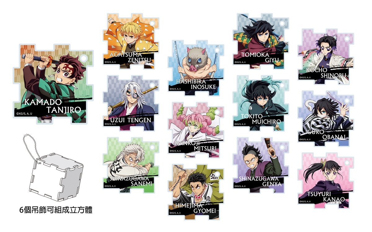 盲抽瞬間就像進入無限城的命運選擇。每個都封印著動畫中的高能場面的「炫彩劇照徽章」,從猗窩座睥睨全場到彌豆子落淚凝視,每一幕都讓人複習著經典片段。想要角色陪伴?將炭治郎與夥伴的信念化作「造型磁鐵」,磁力吸附同時心也跟著吸上去了!抽到誰、拼上誰的十三款「拼圖吊飾」,全靠盲抽天命連結,拼出你心中的戰鬥組合。