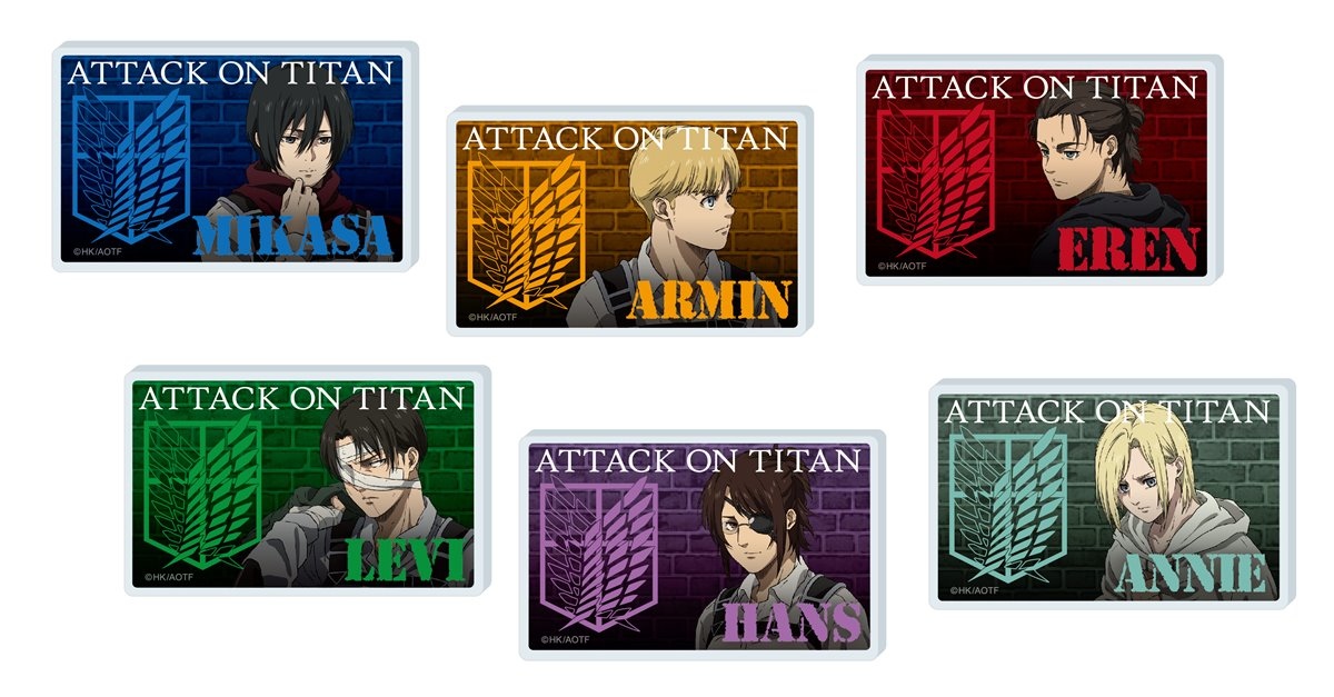 以簡約配色收錄調查兵團堅定信念的六款進擊的巨人「盲抽長方磁鐵」,看到就想獻出錢錢買回家!選用角色戰鬥畫面設計的進擊的巨人「光釉徽章」質感細緻,從兵長的冷冽眼神到萊納的掙扎表情,每個都像是從牆外世界寄來的戰鬥記憶,而身穿調查兵團制服的艾連與夥伴們化身「迷彩大徽章」,專屬配色搭配迷彩印刷,抽到誰都是一發命中最強戰力!