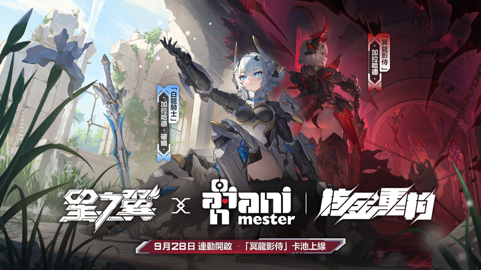 黑白雙生,龍騎登場!大漫匠旗下的核金重構品牌原創角色「冥龍影侍 - 加拉哈德」、「白龍騎士- 加拉哈德・破曉」將在本次聯動版本中陸續與大家見面。如圖永夜與破曉,黑暗與光明,這兩位來自異世界的龍騎士,明明張著相似的外觀卻有著截然不同的性格,將會給各位團長帶來不一樣的戰鬥體驗。