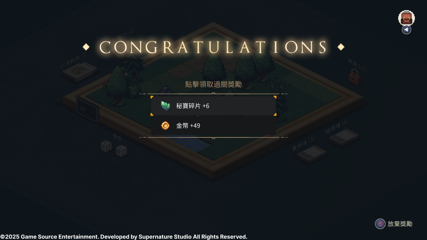 使用不同的道具秘寶和卡牌在奇妙的棋盤世界中掙扎求存