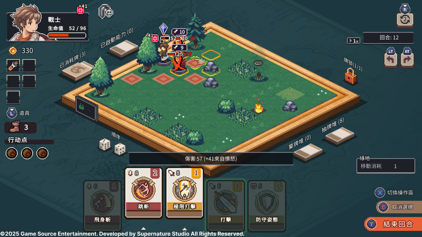 如果你希望能活下來,首先需要了解地形及自己的卡牌。在 8×8 的棋盤上,玩家的每一個行動都可能影響整局遊戲的結果。利用場地佈置給敵人鋪下陷阱和把握走位進行打帶跑避免被包夾,把每一場戰鬥的體力消耗減至最低以增加存活的可能性。