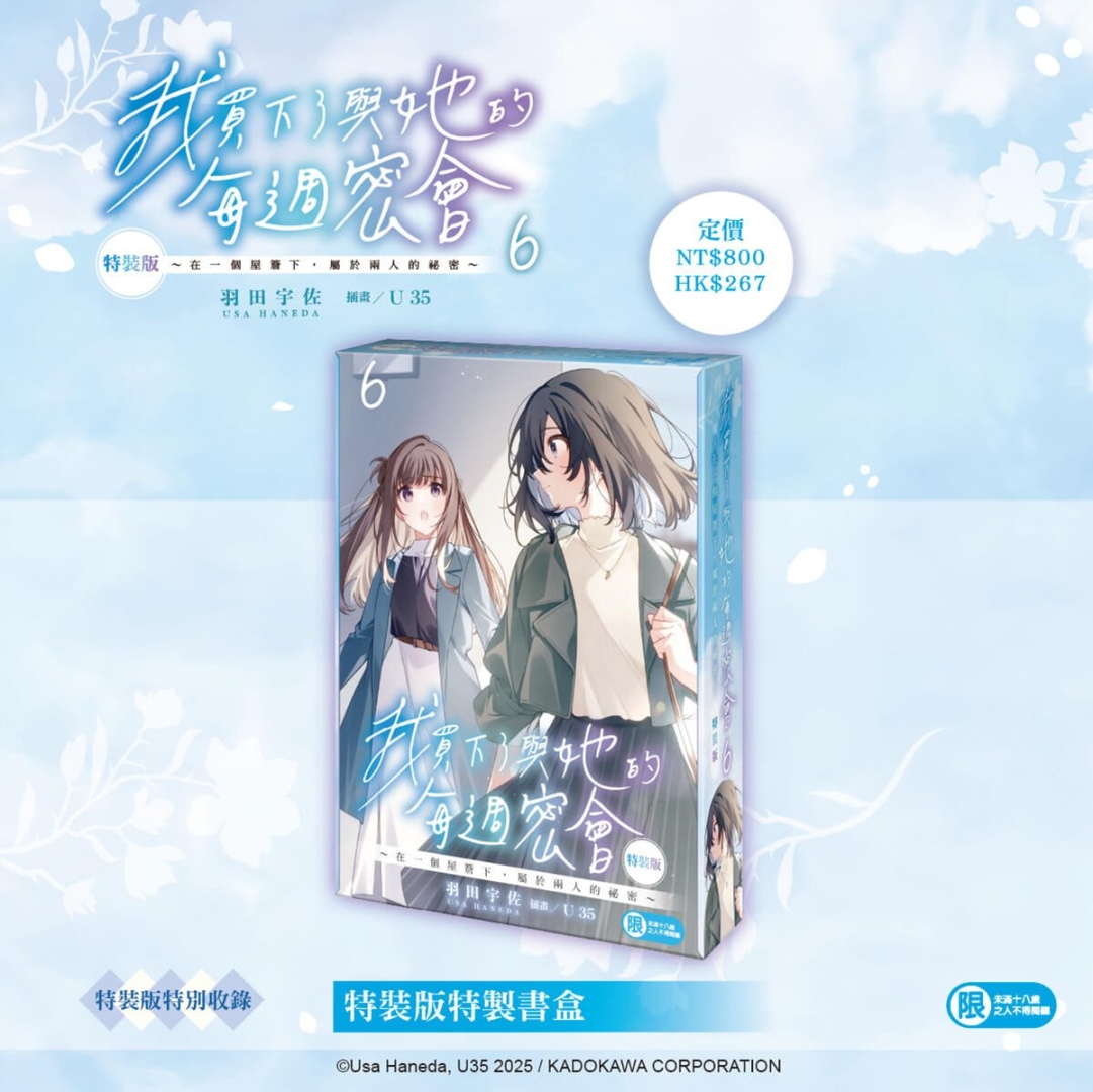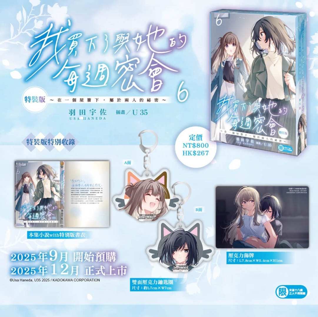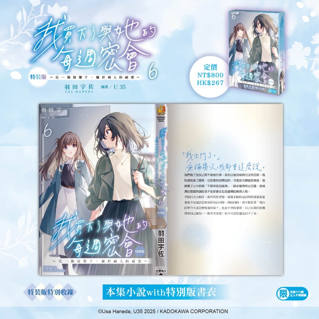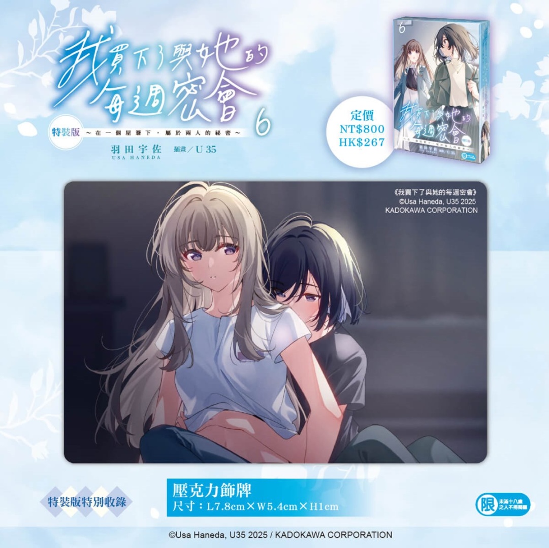 榮獲第 7 屆カクヨム網路小說大賽戀愛喜劇部門「特別賞」,由日本輕小說家羽田宇佐著作,漫畫家 U35 擔綱插畫,描繪出難以掌握的曖昧距離,有些危險的 Girl Meets Girl 戀愛故事續篇──《我買下了與她的每週密會(6)~在一個屋簷下,屬於兩人的祕密~》將在台發售特裝版,即日起開放限期兩週的事前預購!
