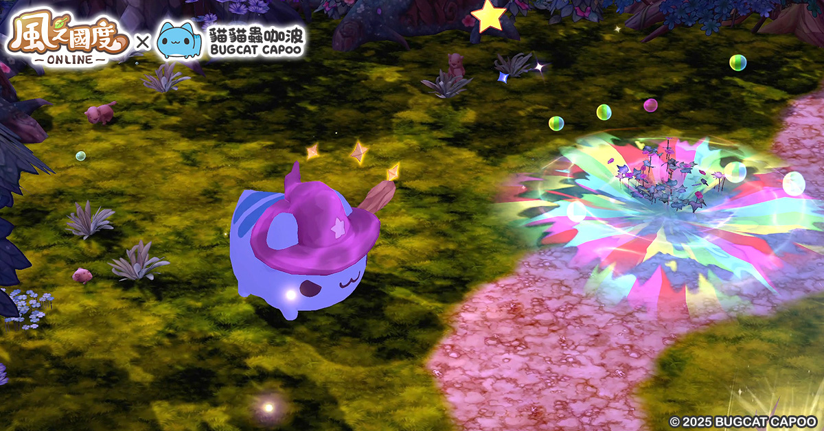 《風之國度Online》首次與療癒系 IP「貓貓蟲咖波」合作,玩家可透過遊戲內活動獲得一系列限定獎勵。完成事前預約的玩家將可獲得活動專屬契約神卡「咖波」。遊戲內也推出了超萌的「咖波T恤」和「咖波耳朵頭飾」、獨家「咖波魂卡」、以及多款期間限定稱號。