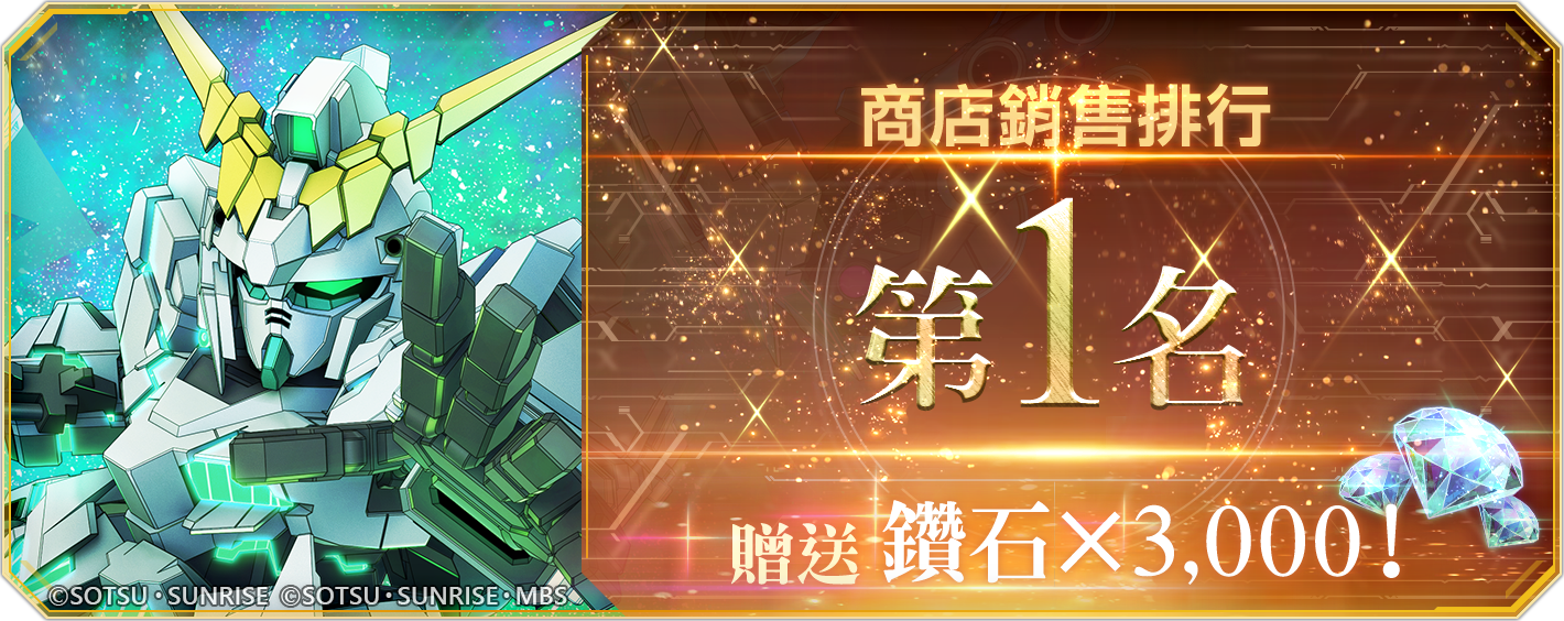 歡慶商店銷售排行第一名,贈送全體玩家鑽石 3,000 個!