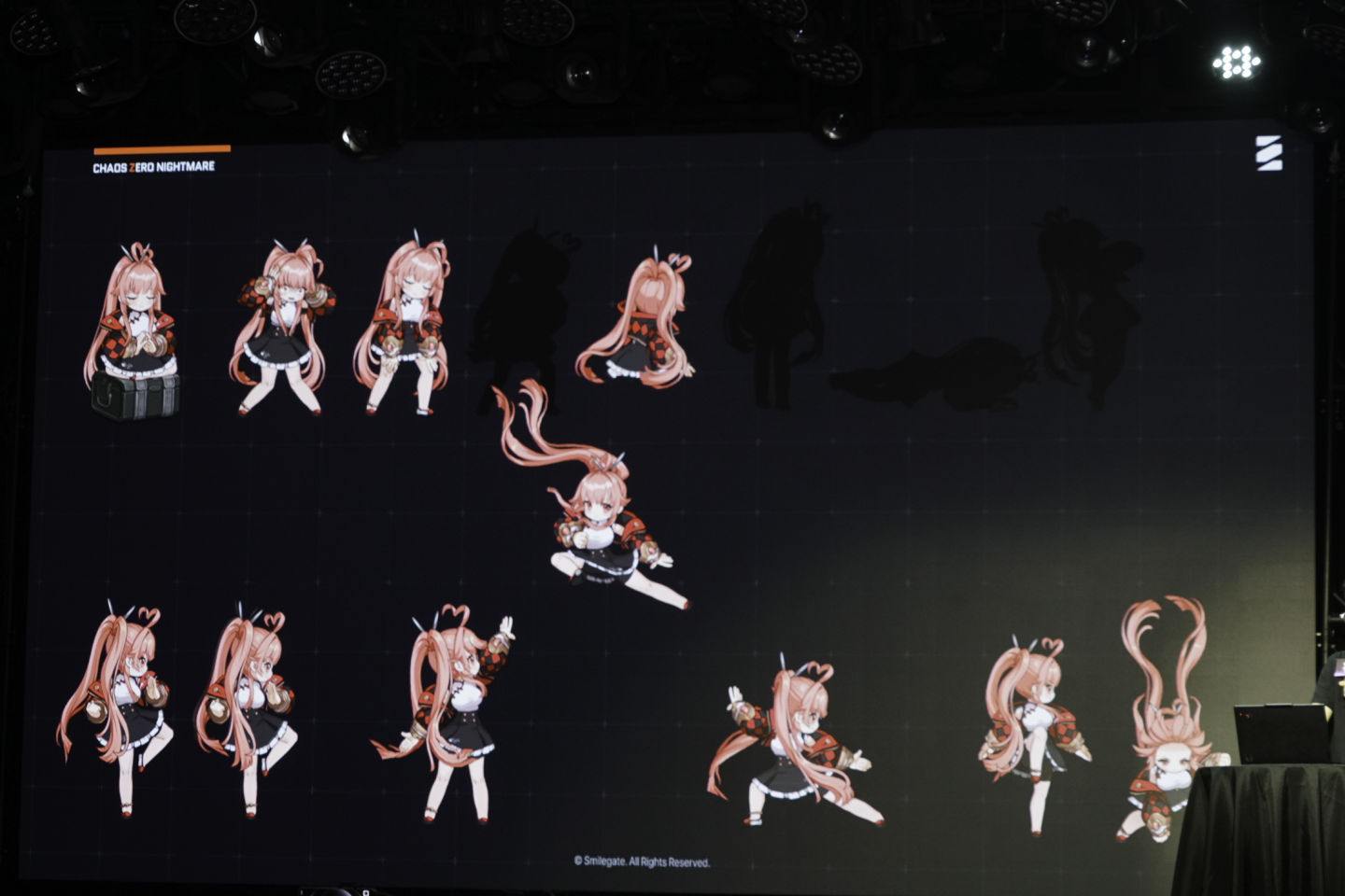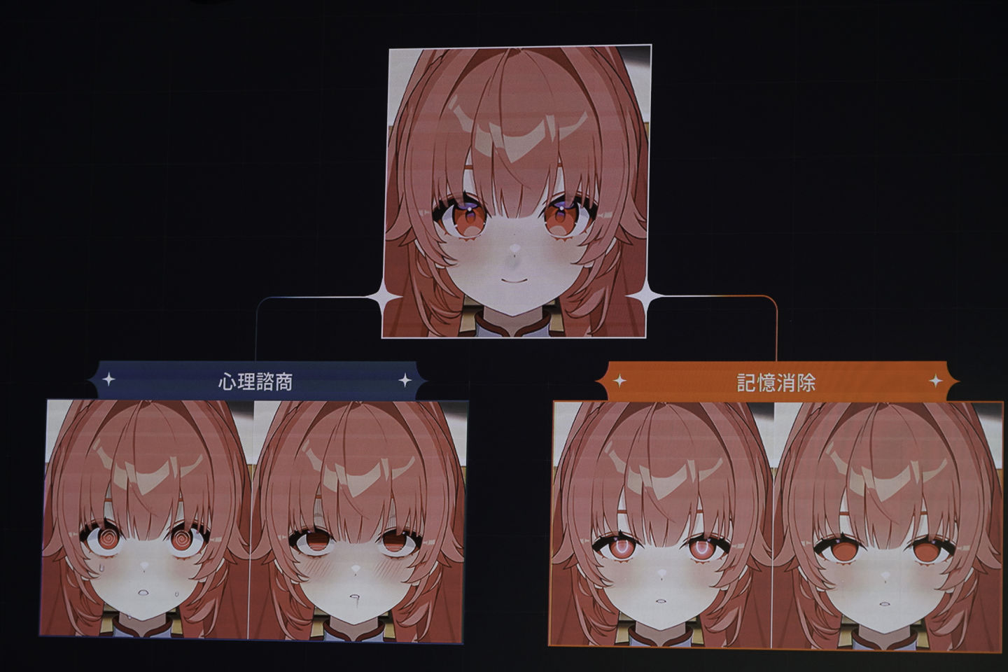 在角色塑造上,金總監以「梅鈴」做為例子,每位角色都擁有超過 30 種細膩的模型動畫演出、 2D 立繪、事件短動畫、角色技能動畫等,LIVE 2D 動畫有偶像、動作手勢、技能手勢、技能表演,必殺技則有兩種動畫演出,插畫與崩潰差畫各有兩種,每個角色獨有卡牌的差畫也有七種以上,突破的稜鏡作畫更有五種。