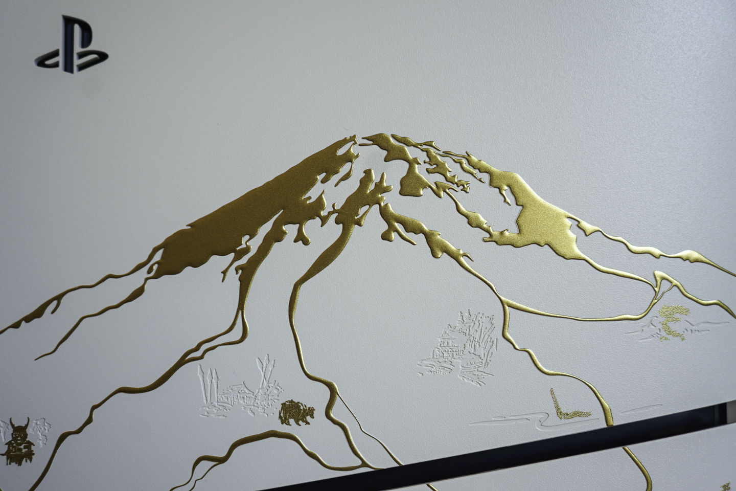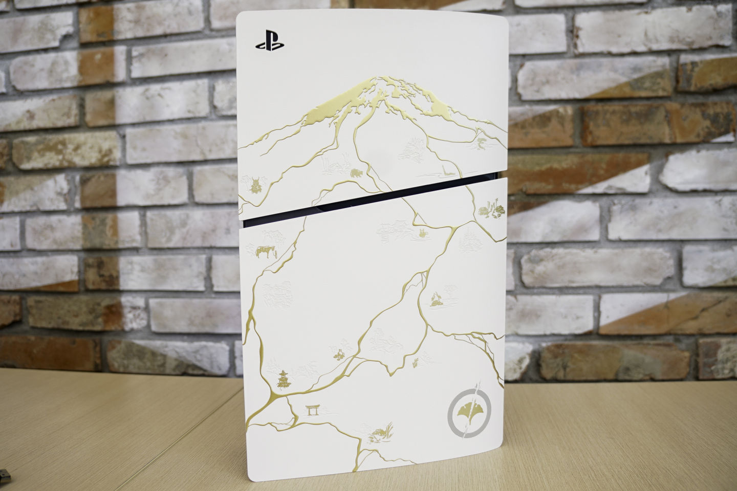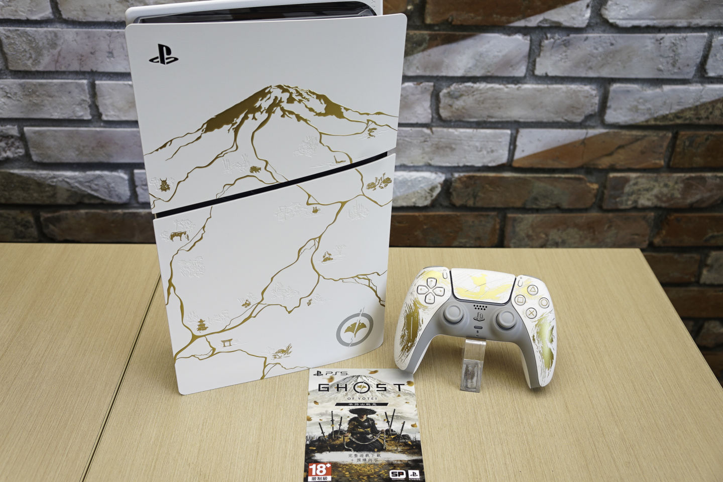繼《死亡擱淺2》外的第二款限定主機就是《羊蹄山戰鬼》了,或許為了彌補《對馬戰鬼》時的遺珠之憾,這次是特仕版主機以及控制器一併具全。整體設計的白/金色系是來自於日本傳統修補陶器技法「金繼」,以黃金與漆修復碎裂瓷器的傳統技藝。遠觀就是這次的冒險主軸「羊蹄山」,也就是玩家透過望遠鏡看到的各處據點。這套主機同時有出單外殼版,已經有主機的玩家可以購入。