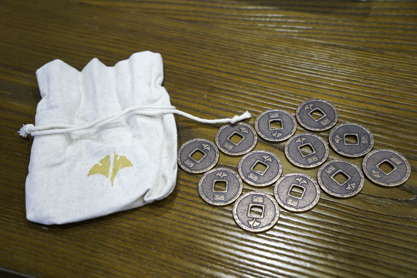 剩下有個配件盒專門給金屬製刀鐔、收藏卡以及這次的彈錢幣小遊戲配件包,同樣以金屬製作有 12 枚,但是要玩到跟遊戲中的技巧可不是這麼容易的。