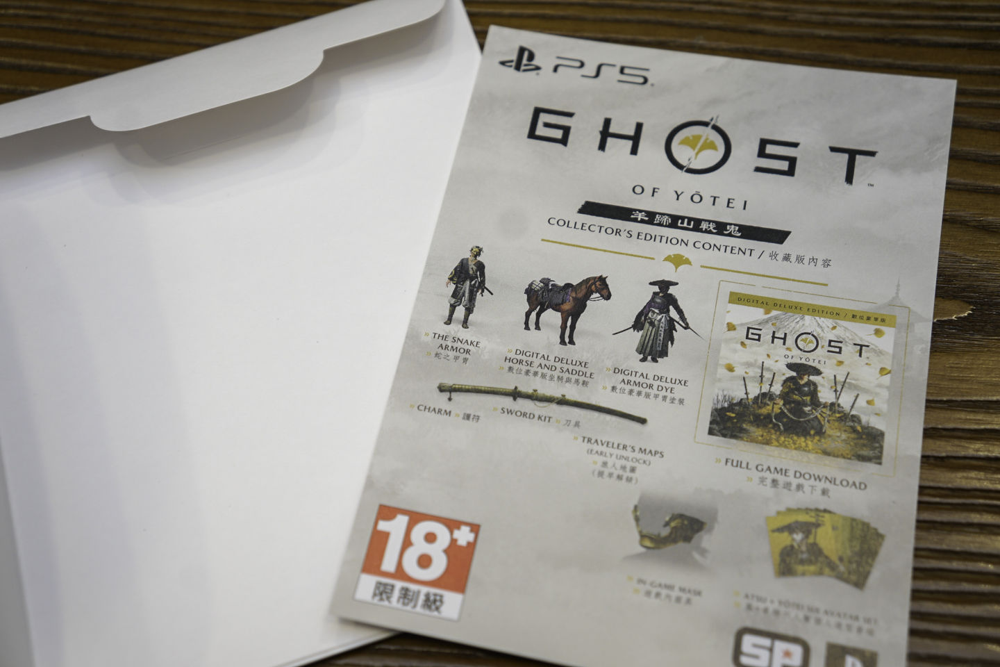 《羊蹄山戰鬼》收藏版實體內容,與一代相同有了戰鬼面具以外,還有布帶、刀鐔、銀杏樹紙藝、收藏卡,及附收納袋的彈錢幣遊戲,另附有數位特典,遊戲本體採用數位豪華版下載碼。豪華版特典主要提供遊戲內面具、篤+羊蹄六人幫造型套組、刀具、蛇之甲冑、數位豪華版甲冑塗裝、數位豪華版坐騎與馬鞍、護符、旅人地圖。