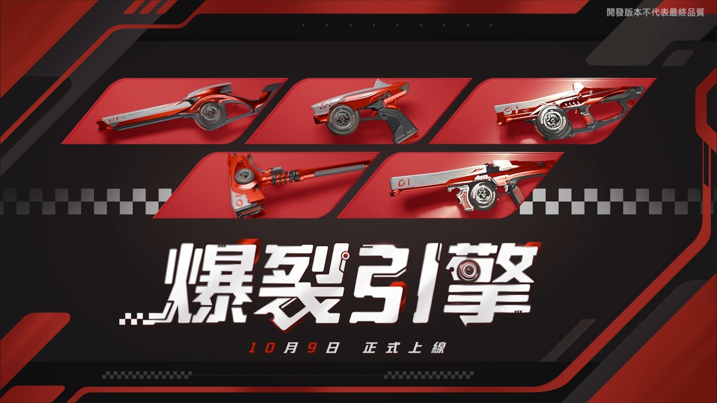「爆裂引擎」系列以「賽車」為主題,採用紅白撞色的熱血配色,搭配槍身下方高速運轉的輪圈設計,象徵每一次開火都如同引擎全速啟動,快、狠、準!當你擊敗敵人時,更會觸發賽車衝線、冠軍獎盃高舉的特製動畫,為每一次勝利獻上最華麗的喝采!