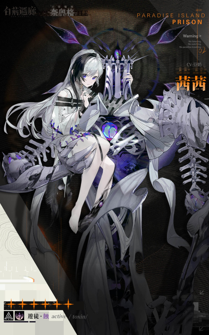 樂園島年紀最小的囚犯。體質特殊,天隙事件當日覺醒成為同調者。但當時過於年幼,能力不受控,造成小規模傷亡,因而入獄。為了避免她的言靈能力再度引起混亂,茜茜必須佩戴發聲抑制器。樂園島事件中,茜茜被來自克圖爾特世界的「奈奧格」寄生,恢復神智後與之成功共生。